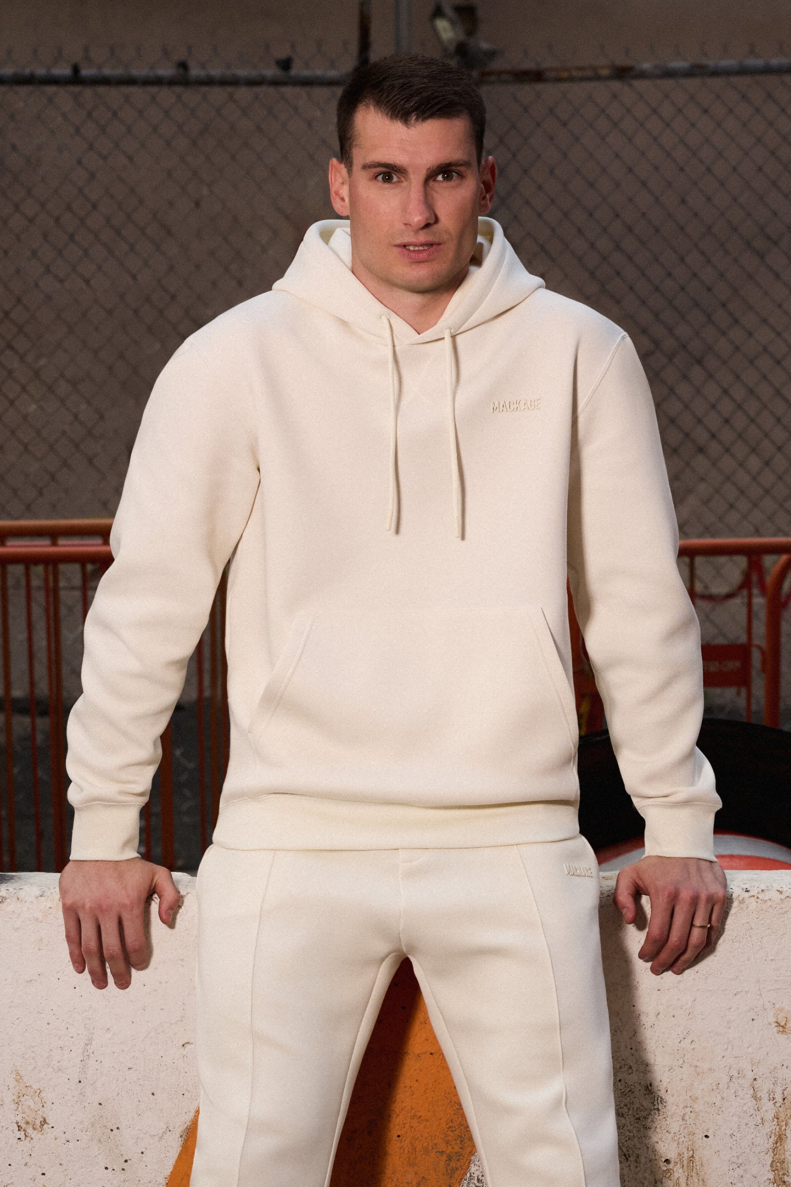 Dominik wears KOLTON in Cream
