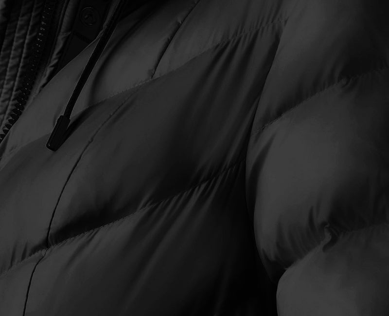 FREYA-SW is a quilted down jacket made from a light softwash crinkle material for a matted finish. Adjustable bungee at waist defines the relaxed fit. Water resistant and repellent, it features an adjustable hood and a pillow collar, fully lined for extra warmth. A bold winter layer with utilitarian comfort
