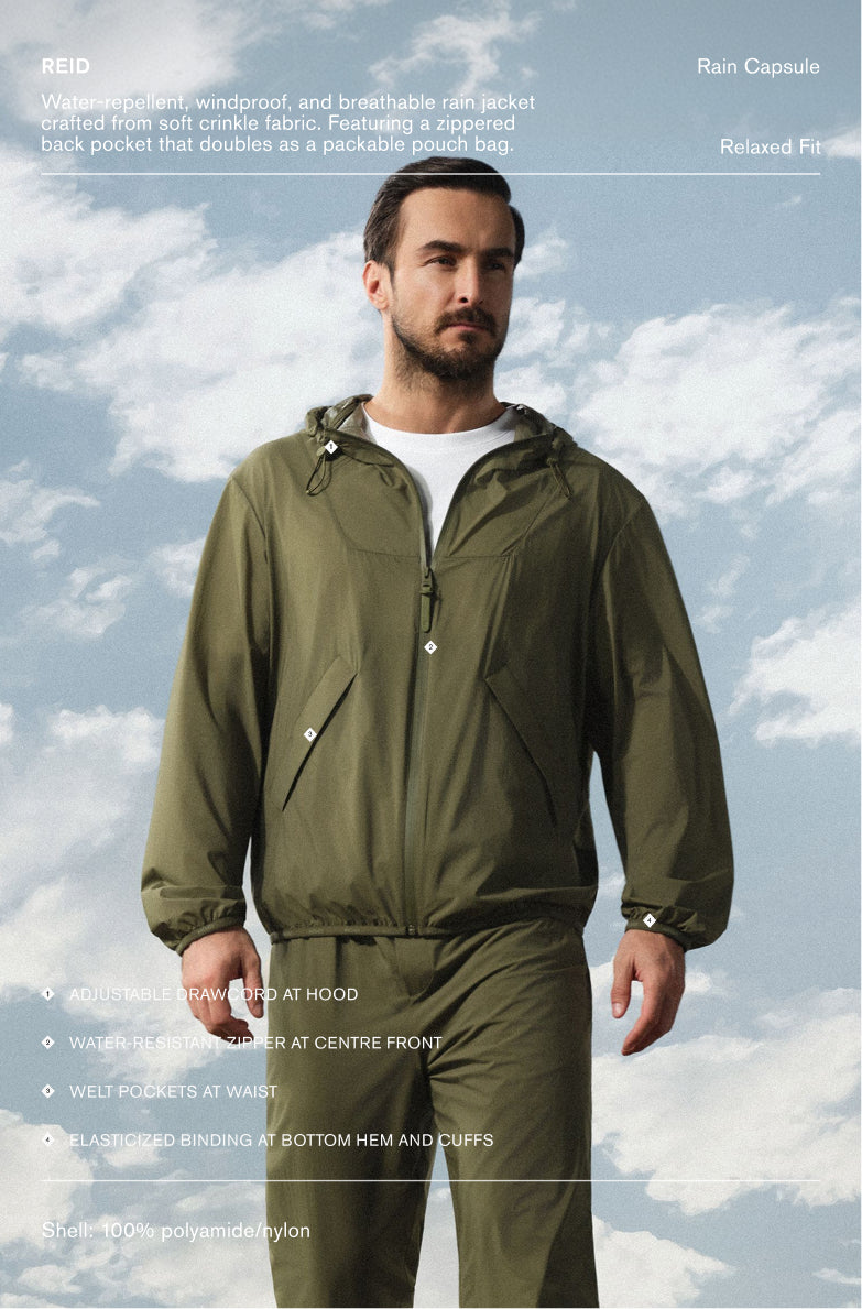 Designed for movement in all conditions, each piece reflects a disciplined approach to protection and form. In rain or in transition, the collection asserts a refined resilience, uncompromising in performance and exacting in silhouette.